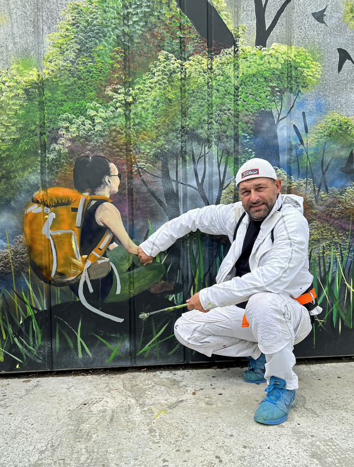 Together with a small dedicated team of young volunteers, who spent a few hours every day helping Kristian with the painting, they managed to add new life and inspiration to the concrete in a way so that the decoration can be experienced both from a distance and up close.