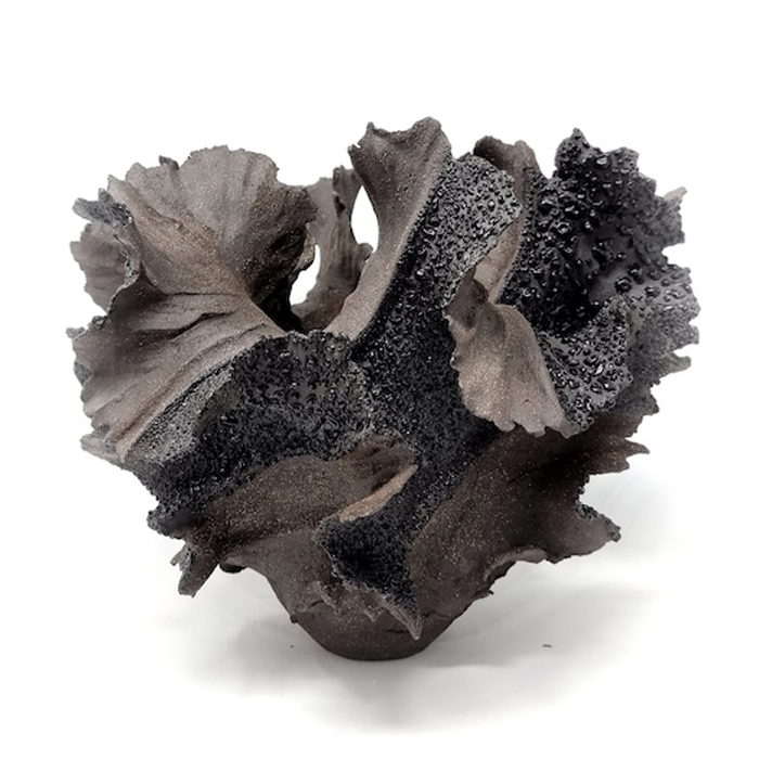 I udstillingen SOLO præsenterer Rikke Laursen en serie keramiske skulpturer skabt i organiske og asymmetriske former. Hver skulptur er håndopbygget ved hjælp af den traditionelle pølseteknik, hvor formen udvikles langsomt og præcist. De karakteristiske, tynde “blade” er modelleret med fingrene og forarbejdet, indtil de næsten virker vægtløse. Overfladerne er håndglaserede med pensel, hvilket giver hver skulptur sit eget udtryk og en tydelig fornemmelse af håndens arbejde. Værkerne har ingen fast forside eller bagside, men ændrer karakter alt efter, hvilken vinkel de opleves fra.