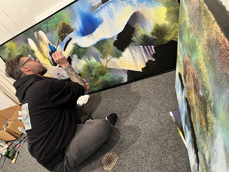 His work is defined by figurative forms, intense colours, and a narrative depth that both grounds and challenges the viewer.